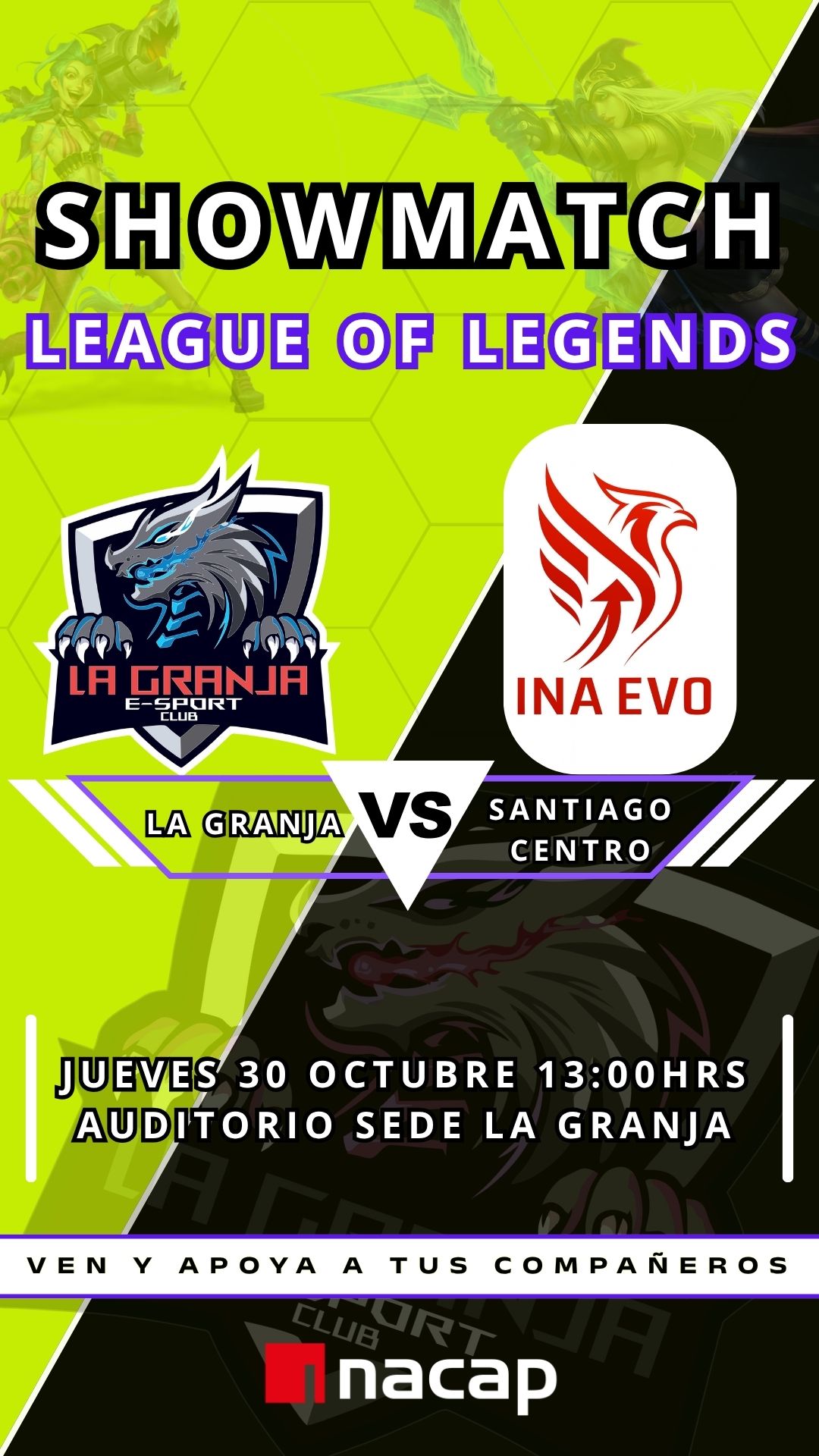 En la modalidad 5v5 para equipos conformados y experimentados, presenciarás un espectáculo competitivo donde los mejores equipos lucharán por grandes premios y sorpresas. Las finales se llevarán a cabo en el auditorio de nuestra sede.